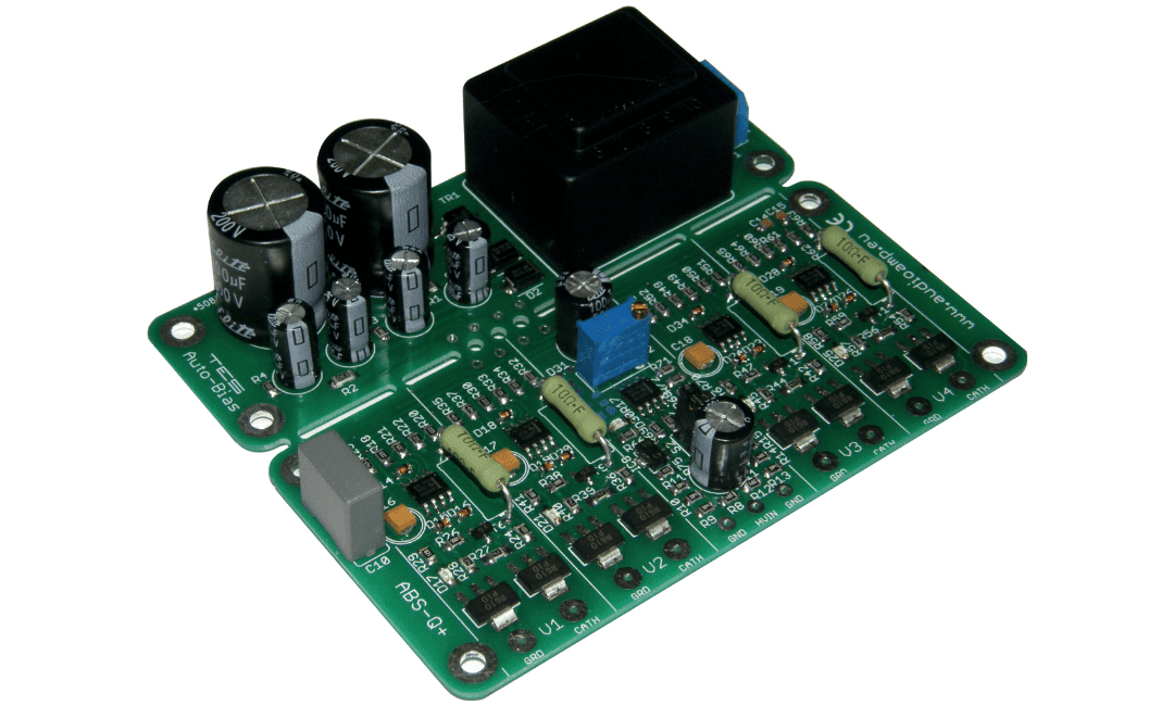 The model ABS-Qi+ auto bias module is designed to optimize the bias for four triode or pentode output tubes in Push-Push (PP) or Parallel-Push-Pull (PPP) amplifiers that DO NOT have their own negative bias supply circuit.