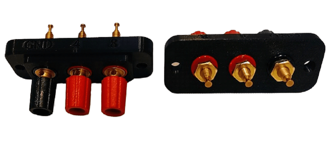 The High-Performance Terminal Block is derived from our tube pin terminal block development with GR Research. We took a different path for the interconnects, since most Miller Audio customers are not using tube pin connectors to interface with their amplifier. We used the same 3-D printed terminal block for the tube pin connector project, then insert a Made-in-the-U.S.A., 5-Way binding post made from Gold Plated, Copper-Tellurium. These binding posts have no ferrous parts and are as low-mass as possible. We found the supplied binding post retaining nut and washer were made from ferrous materials and magnetic. We replaced with a Silicon-Bronze lock washer and a brass nut, removing all ferrous parts in the binding post and audio signal path, only $135.00/set.
