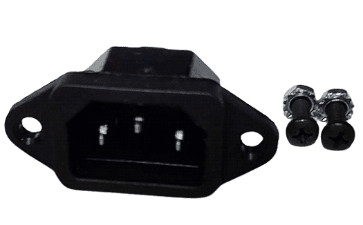 This socket mates to a IEC C14 male power plug and is rated for 10/15 Amps @ 125/250VAC; comes with Black Oxide Fasteners & Kep Nuts; $7.00.